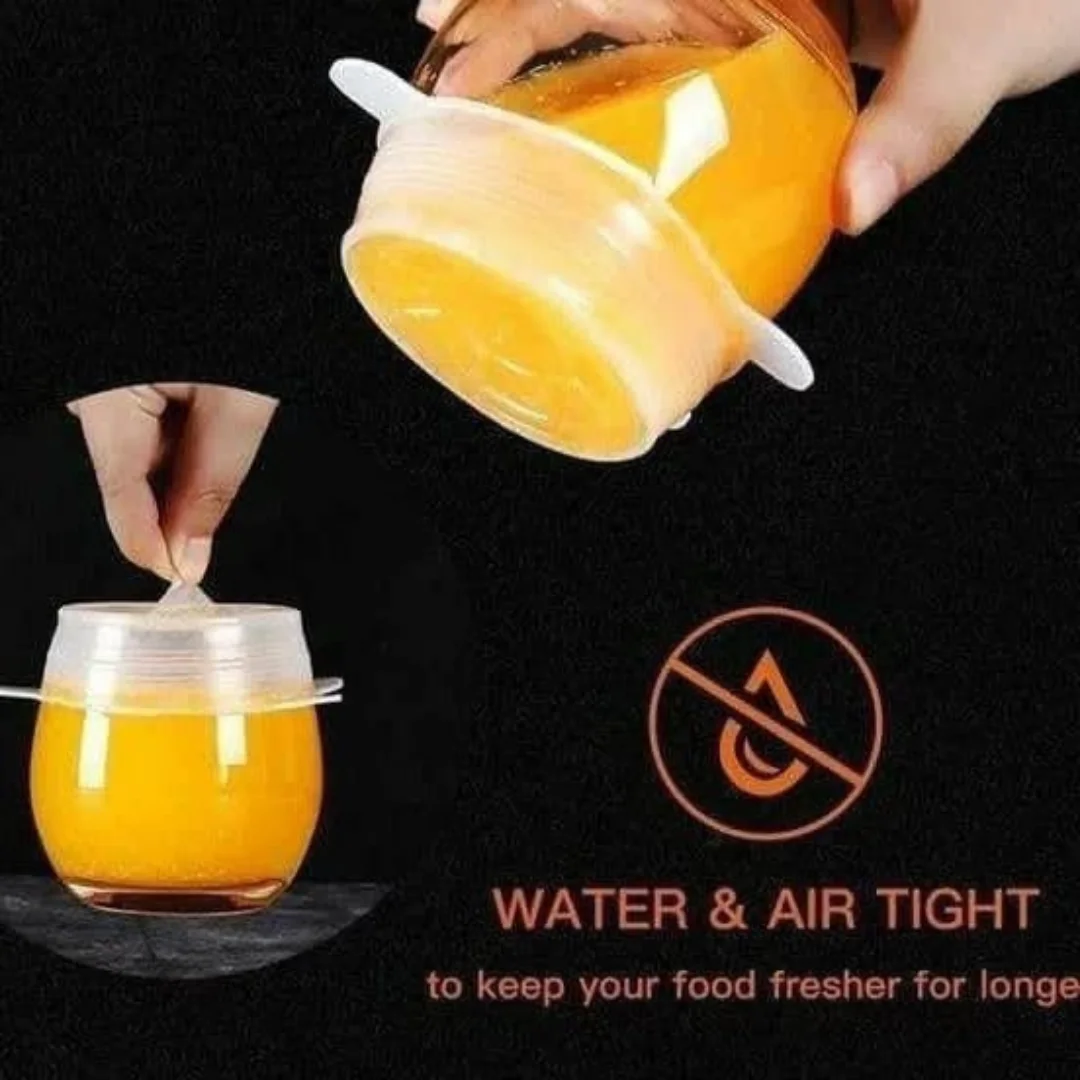 درپوش محافظ ظروف از جنس سیلیکون مقاوم در مقابل حرارت و قابلیت انعطاف پذیری. بسته ۶عددی به قطر های: ۷، ۱۰، ۱۲، ۱۵، ۱۷، ۲۰ سانت.